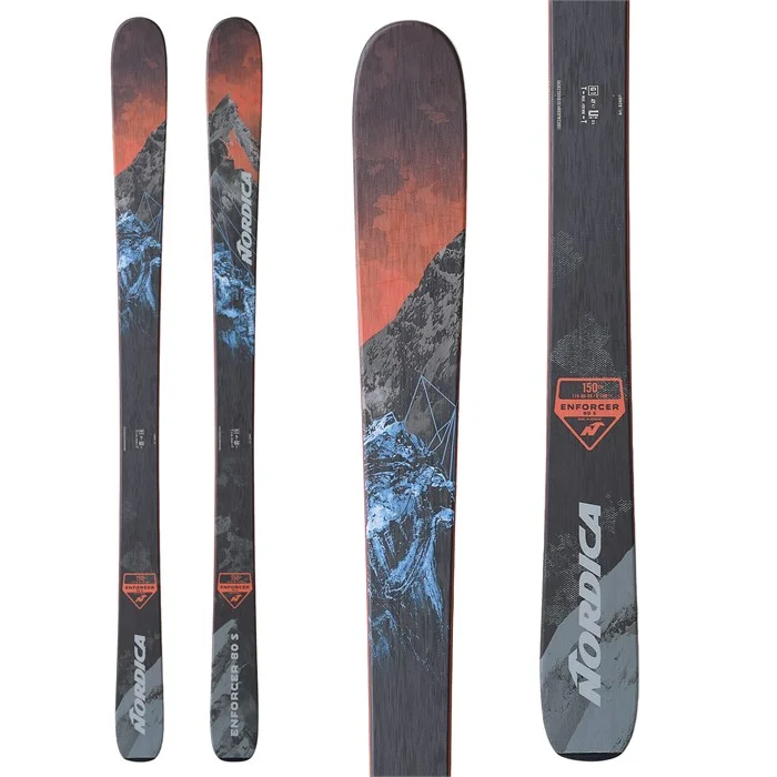 The Nordica Enforcer 80 S Kids' ski delivers a smooth, versatile ride for advanced young skiers looking to conquer all-mountain terrain. Its hybrid rocker camber profile combines stability at speed with easy turn initiation and maneuverability in variable conditions.