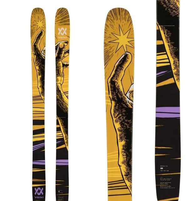 The Volkl Revolt 114 delivers a playful yet powerful ride for expert skiers seeking adventure in all conditions. Its hybrid rocker camber profile and twin shape excel in freeride and powder terrain, allowing for effortless floatation and maneuverability.