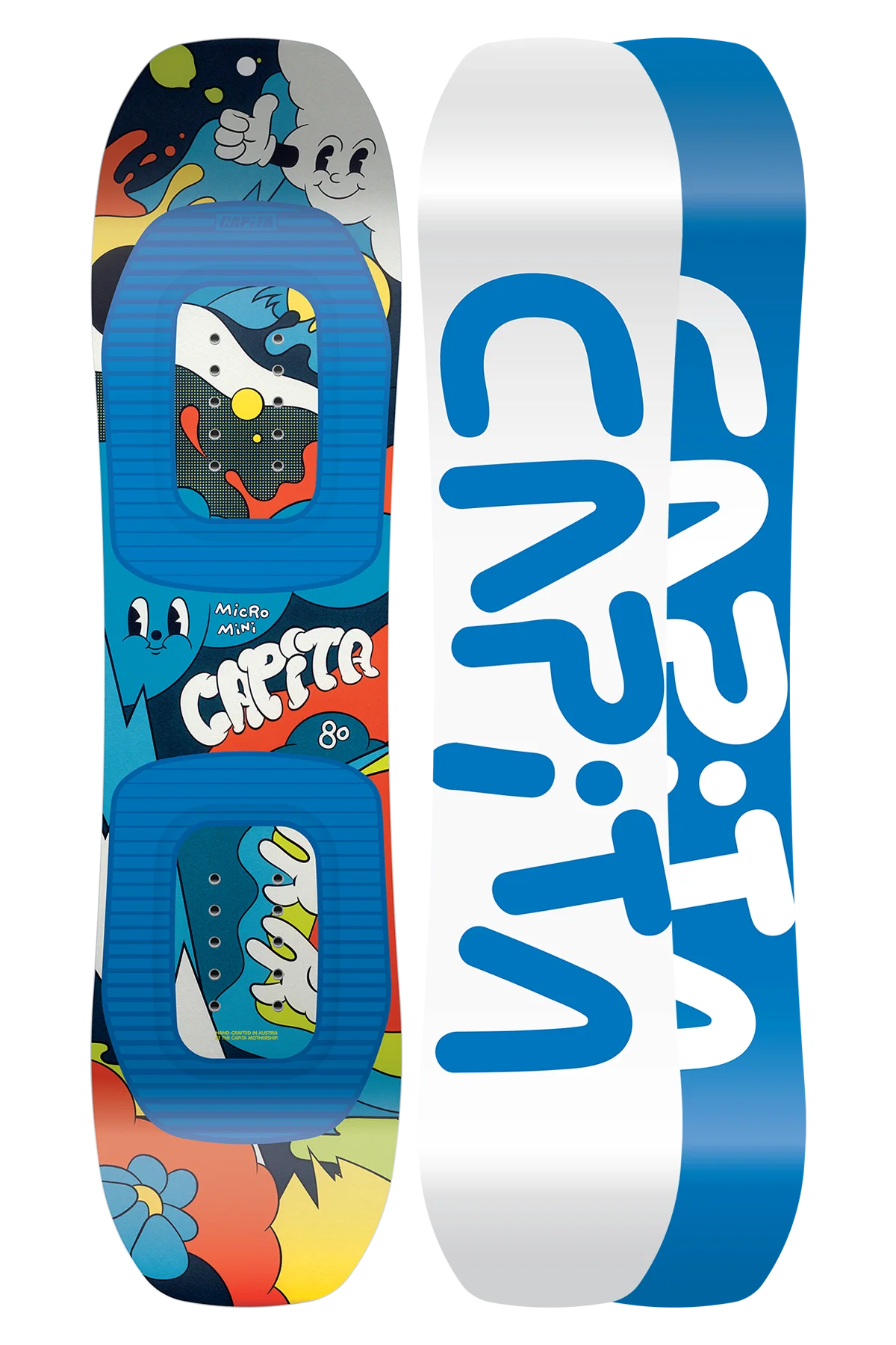 The Micro Mini is the perfect board for kids getting their first experience in the snowboarding game. Redesigned from the ground up, this new series features a new shape and sidecut to enhance the learning curve for young guns and new riders. With a target age range from 2 years old on the 80, and upward of 8 years old on the 110, these are great learning boards when the length of the board reflects a range approximately between the distance from the floor to the rider's chin and brow.