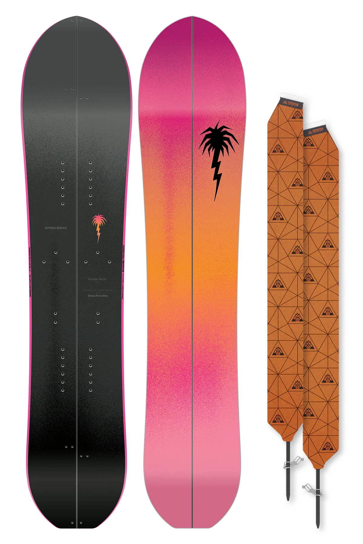 The Spring Break Powder Racers utilize one of the best-selling shapes from the sought-after Ultralight Powder Displacement Snowcraft collection with a more accessibly priced construction. Utilizing a large surface area to increase floatation and deep sidecuts to carve up the slopes, the Powder Racers produce party vibes in powder and on groomers alike. The Powder Racers feature a Hover Core™ to reduce weight in an oversized chassis and create a more surfy feel underfoot. Available in four sizes