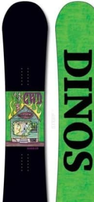 The Dinosaurs Will Die Darrah is a playful and versatile board built for carving up groomers and navigating park features with ease. Its forgiving flex and flat camber profile make it perfect for riders looking for a smooth and responsive ride in any terrain within Darrah's domain.