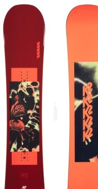 The K2 Dreamsicle is a playful all-mountain snowboard with a directional shape and rocker camber profile that excels in both powder and groomed runs. This soft flex makes it ideal for intermediate riders looking for a smooth and forgiving ride.