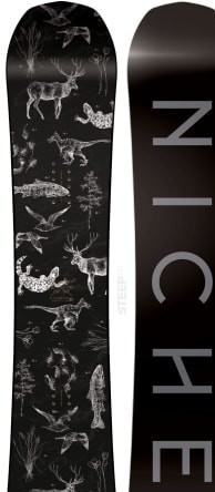 The Niche Crux snowboard is an all-mountain freestyle board designed for riders seeking a balanced and versatile ride. With its twin shape, camber profile, and moderate flex, it's ideal for both park and powder exploration.