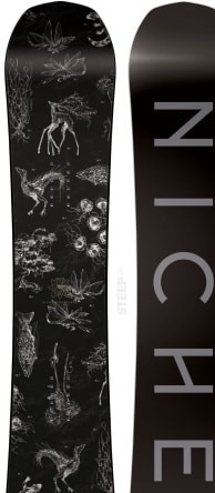 The Niche Nightshade is a versatile all-mountain board built for playful riders seeking a balanced blend of park performance and freeride capability. Its twin shape and medium flex make it equally at home carving groomers or exploring the backcountry.