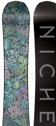 The Niche Nightshade is a versatile all-mountain board built for playful riders seeking a balanced blend of park performance and freeride capability. Its twin shape and medium flex make it equally at home carving groomers or exploring the backcountry.