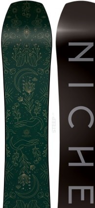 The Niche Pyre is a directional powder board with camber for riders seeking to carve deep lines and conquer fresh snow. Its medium flex provides stability at speed and responsiveness in variable conditions, making it ideal for experienced riders who want to charge untouched slopes.