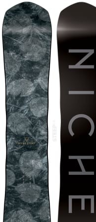 The Niche Story is a versatile all-mountain board with a directional shape that excels at charging groomers while still offering playful float in powder. Its responsive camber flex makes it ideal for intermediate to advanced riders looking for a capable and engaging ride.