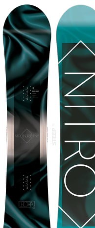 The Nitro Lectra is a playful and forgiving all-mountain snowboard designed for riders who want smooth performance across various terrain types. Its flat camber profile and mellow flex make it easy to maneuver and butter while still offering enough stability at speed.