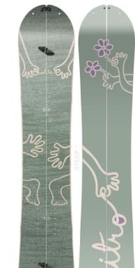 | Size | Waist (mm) | Eff. Edge (mm) | Nose (mm) | Tail (mm) | Sidecut (m) | Stance (mm) | Setback (mm) | Weight (lbs) |