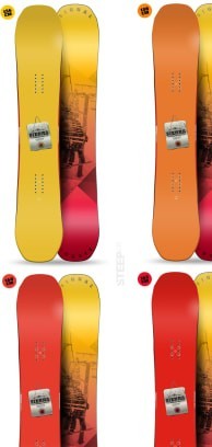 | Size | Waist (mm) | Eff. Edge (mm) | Nose (mm) | Tail (mm) | Sidecut (m) | Stance (mm) | Setback (mm) | Weight (lbs) |